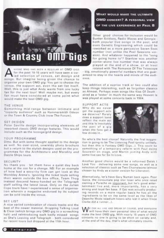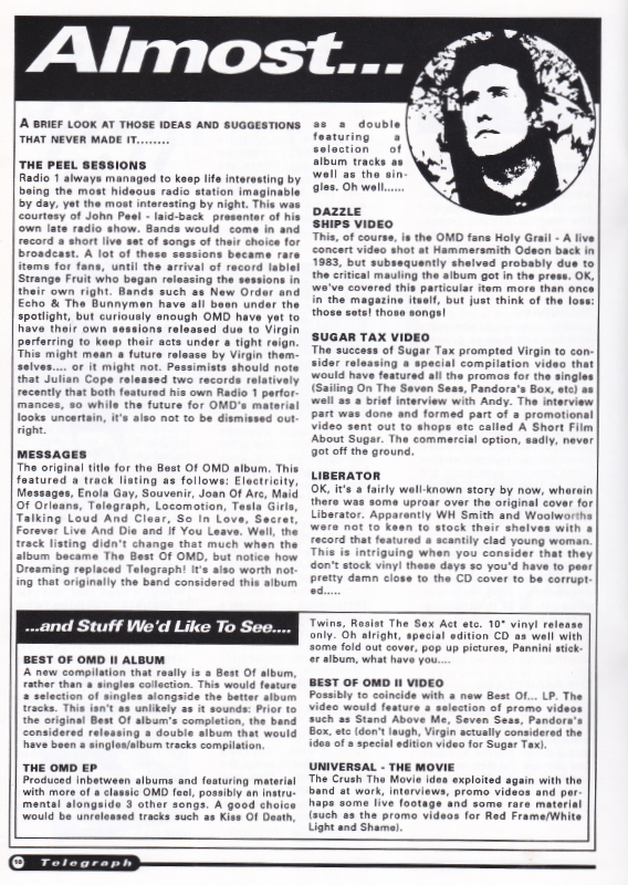 Features OMD trivia, Fantasy OMD Gigs, Top 10 OMD Collectable Records, Press Coverage, OMD On TV and an OMD Quiz.